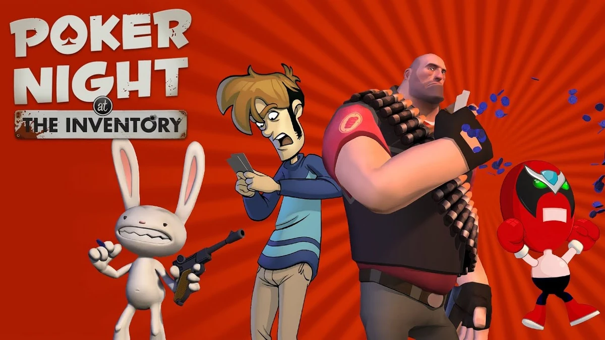 Poker Night at the Inventory Download is a poker game whose main feature is the presence of characters from various franchises: Tycho from Penny Arcade, Max from Sam & Max, Heavy K.R.C. from Team Fortress 2, and Strong Bad from Homestar Runner. The Inventory is a special, exclusive club built under a computer game warehouse. It was created in the early 19th century, just around the time the 18th Amendment to the US Constitution was enacted. It stated that gambling, particularly poker, reduces the nation's ability to work. Poker Night at the Inventory's Free Download gameplay can be considered a full-fledged Texas Hold'em simulator. There are five players at the table: you and four other iconic video game characters. Each player starts with a $10,000 pool. Each player remains at the table until they run out of money. You can place bets of any amount, which increase over time. Blind bets are also available. During the game, one of the participants at the round table will offer a unique item as a buy-in instead of money. Winning the match unlocks these items in Team Fortress 2. The gameplay is based on tracking every player's movement throughout the competition. By fulfilling certain conditions, such as the total number of hands or winning matches, players can unlock a variety of bonuses, including new table surfaces, additional decks, and various interior design options.